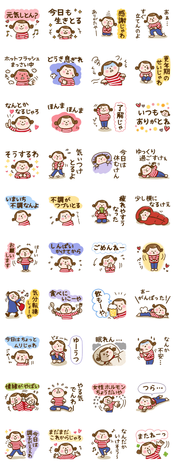 更年期を迎えているお友達との会話や、安否確認にお使いください。広島弁バージョンです。