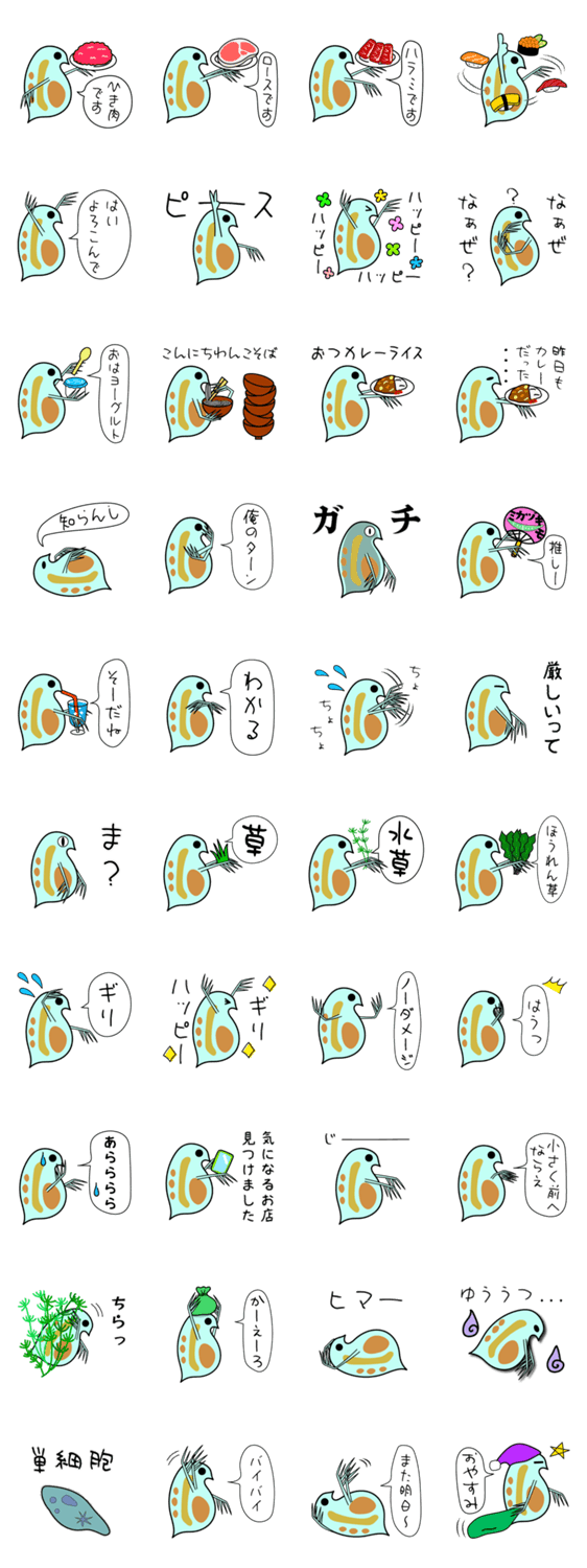 微生物の世界6 ミジンコのゆる日常会話 食 -LINEスタンプマニア