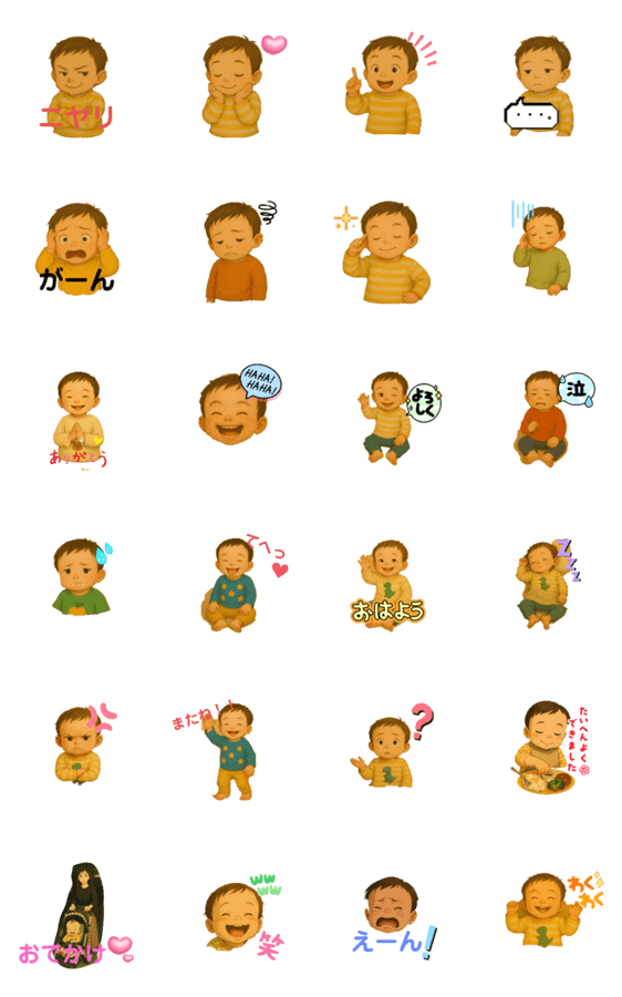 1歳児の「こうちゃん」の表情豊かなスタンプです。