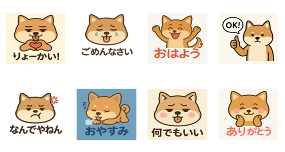 毎日の会話に使える、かわいい柴犬スタンプです。