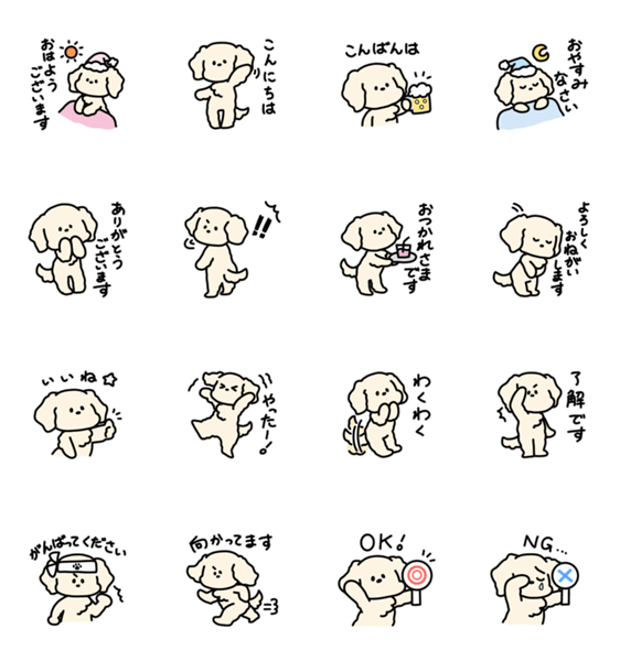 イングリッシュゴールデンレトリバーなわんこが、日常の挨拶のお手伝いをしてくれるスタンプです♪