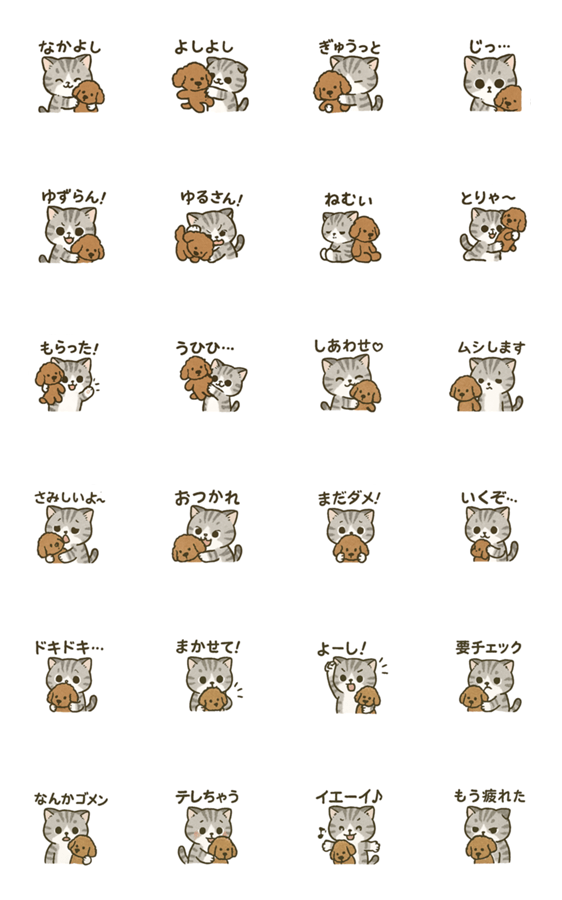スコティッシュフォールドのスコ姫がプードルと優雅にお遊びしている日常風景を第二弾のスタンプにしました。