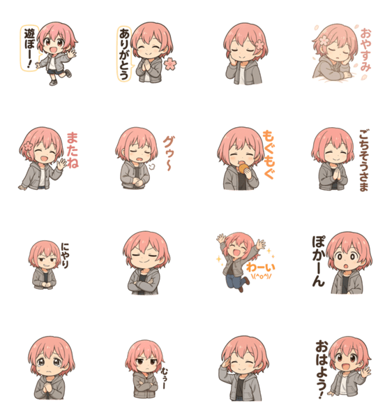 | スタンプ説明 | さくら色のショートヘアで元気な女の子のスタンプです |