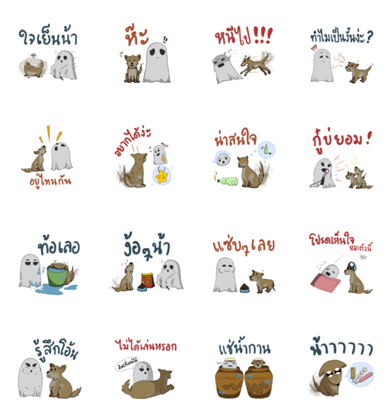| スタンプ説明 | The inspiration of these, started from the point that we want to present Dogs' habits in Thailand. And we decided to present it with the Ghost for more humour. |