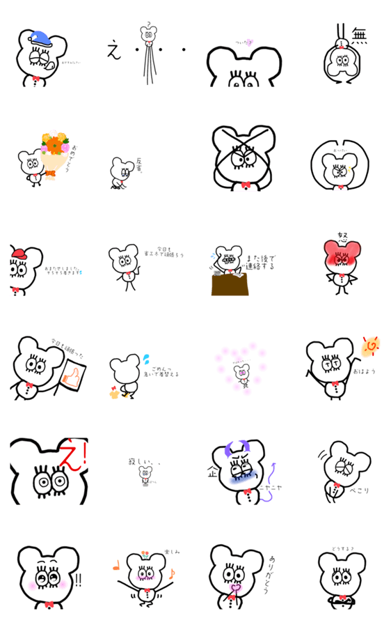 白ネコのあいうえお・・・ってるスタンプ