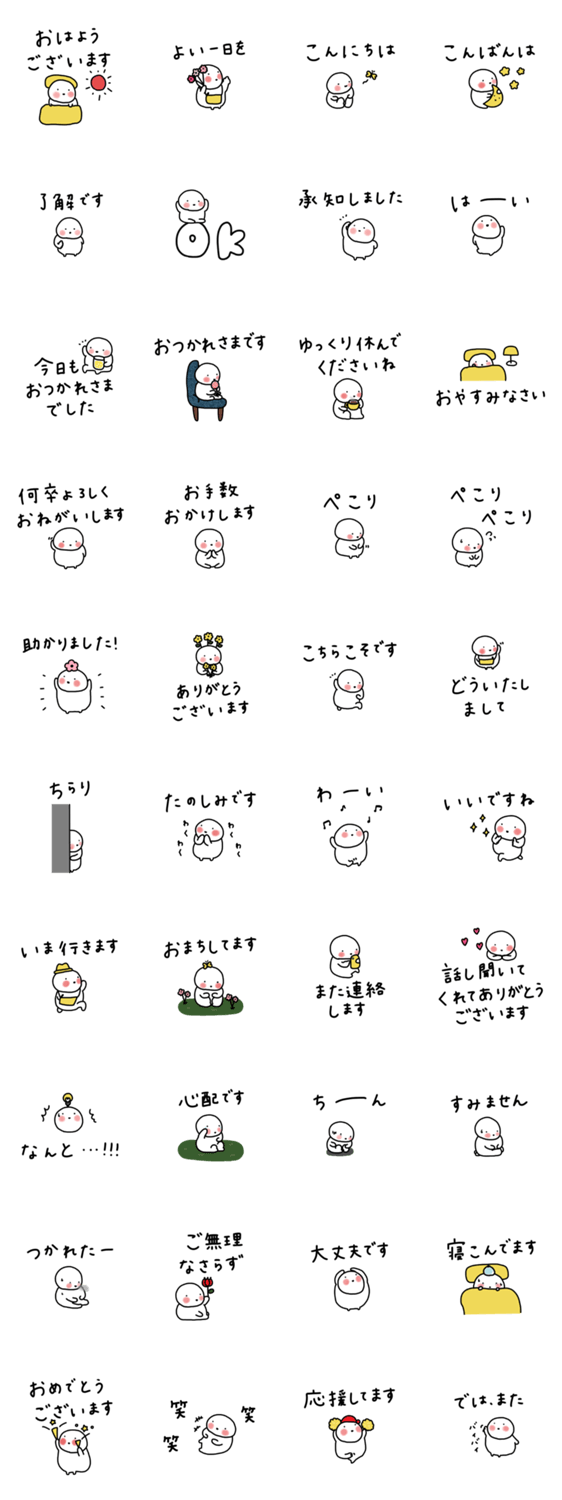 | スタンプ説明 | 毎日使える敬語入りのスタンプです。ぽっちゃりまるいこ。 |