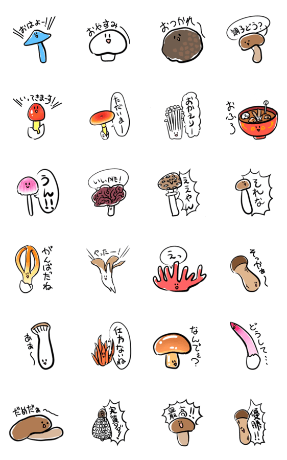 日常で使いやすいゆるいキノコたちのスタンプです。