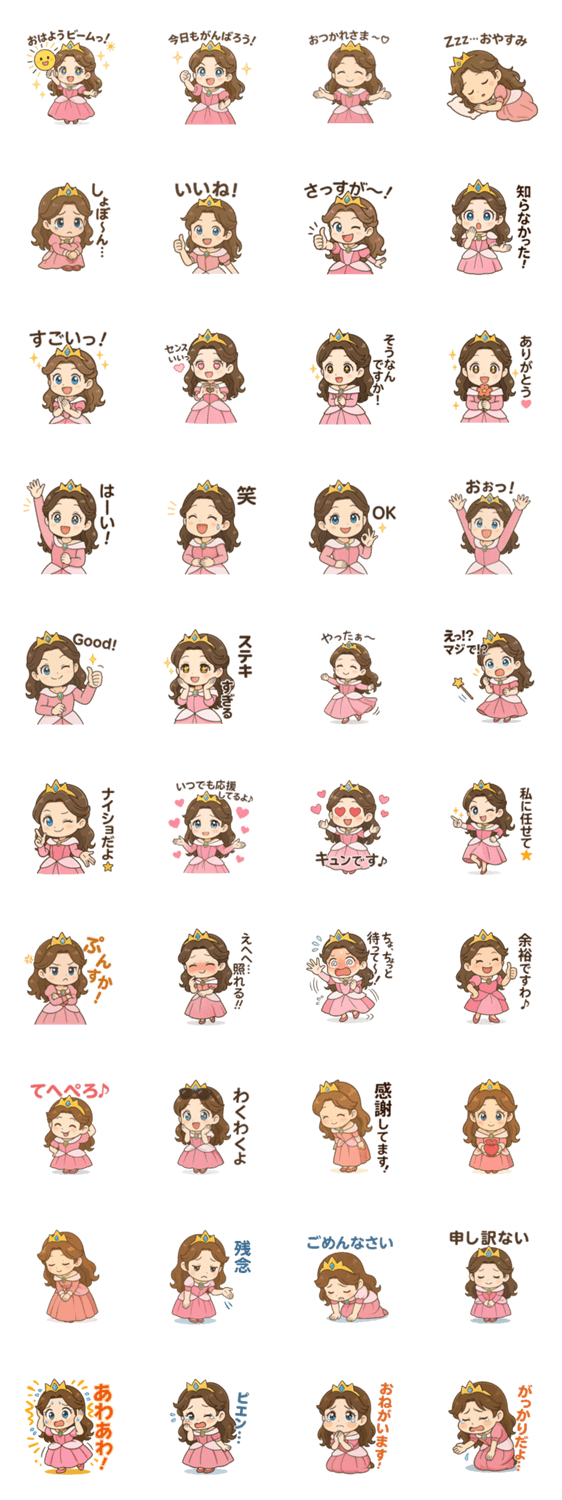 ちょっぴりおっちょこちょいだけど心優しいプリンセスが、日常の感情をとっても素直に伝えてくれるスタンプです。