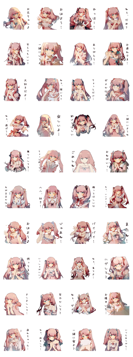 甘え上手な妹系女子の可愛いスタンプ!日常会話/挨拶/恋愛/おねだり/妹キャラ/アニメ風/キュート/癒し/ありがとう/お願い