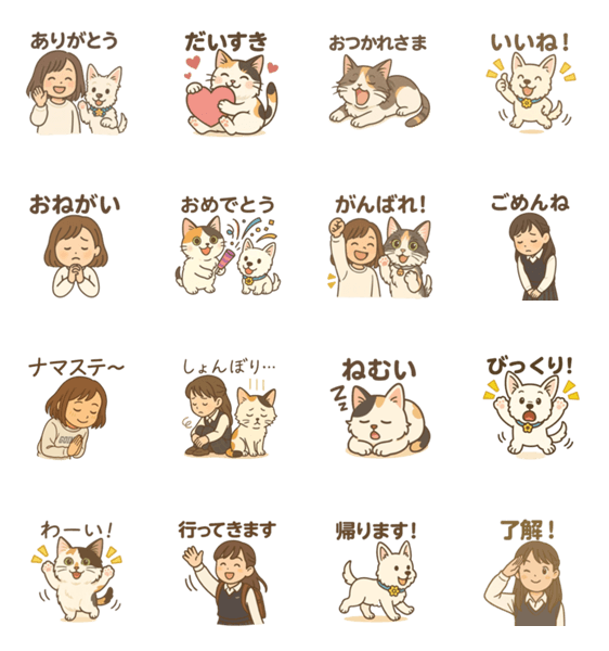 犬のリッキーと猫のソラ、ルナの日常スタンプ第一弾