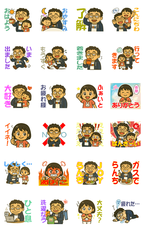 | スタンプ説明 | 全てのワンオペ主夫、ワンオペ育児のパパさんを応援! 日常に使えるパパと娘の親子スタンプです。 |
