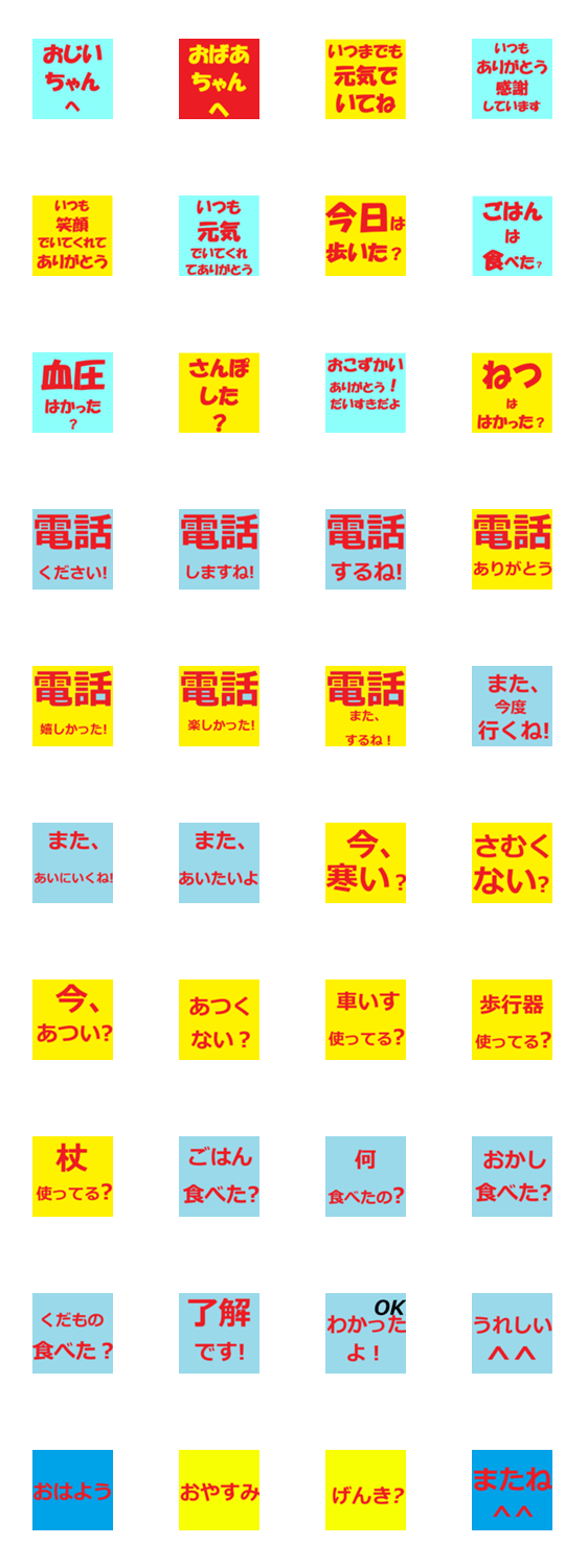 大切なおじいちゃんやおばあちゃんに送って分かりやすいラインスタンプを現役介護福祉士が監修しました。もらったら大変喜ぶスタンプを沢山送って感謝の気持ちを伝えよう!