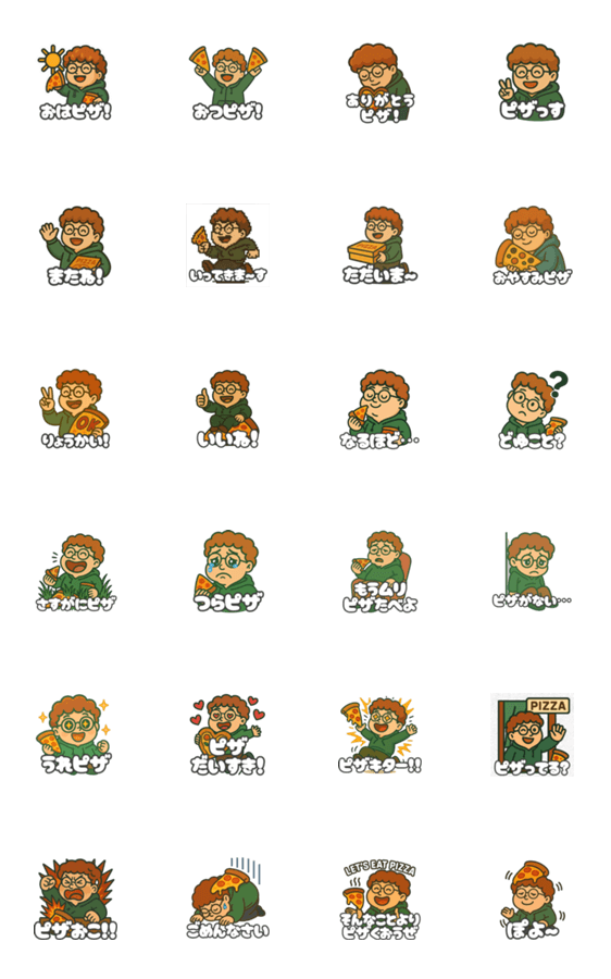 ピザ好きのピザ好きによるピザ好きのためのスタンプ。語尾はピザ