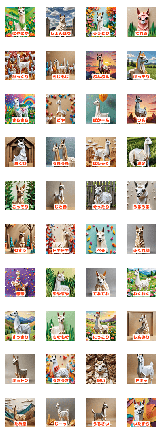 にやにや、しょんぼり、ぷんぷん… リャマがあなたの気持ちを代弁! トークがもっと楽しくなる、40種類の表情豊かなリャマスタンプです。