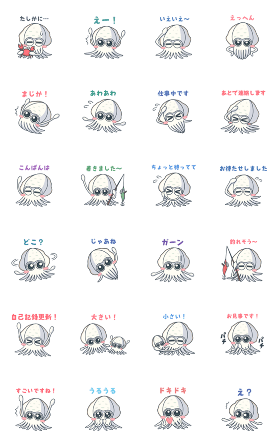 アオリイカとエギングで釣れるイカ5 -LINEスタンプマニア