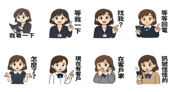 | スタンプ説明 | A new set of 8 stickers for bank consultants Busy days calls visits and quick replies This is how real consultants text |