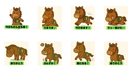 ちびキャラ化した競走馬があなたのトークを駆け抜ける!ゆるくてかわいくてちょっぴりおもしろい、競馬&馬好きにぴったりのスタンプです。