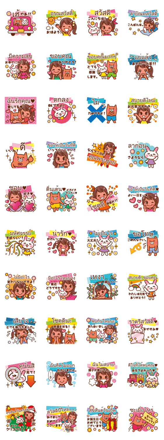 仲良し女の子♡タイ語+日本語 翻訳スタンプ