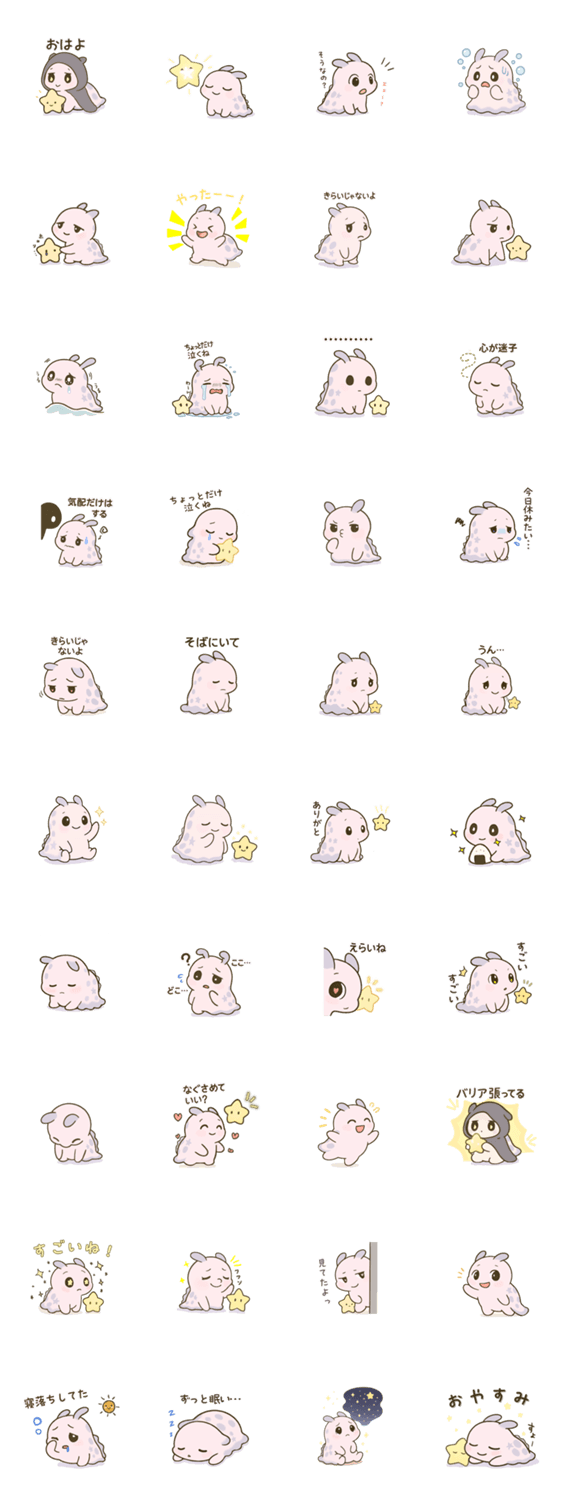 ちょっぴりナイーブなウミウシ「ウミノネ」が、泣いたり笑ったりしながら、そっと気持ちを伝えてくれるスタンプです。日常会話にやさしさを添えたい時にどうぞ。