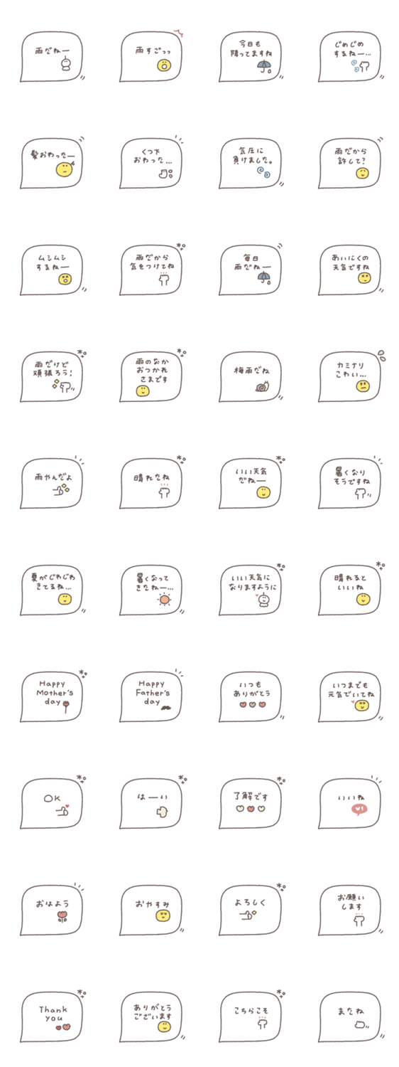 あると便利な文字スタンプです。シンプル/かわいい/ゆる/大人可愛い/毎日使える/あいさつ/吹き出し/梅雨/夏