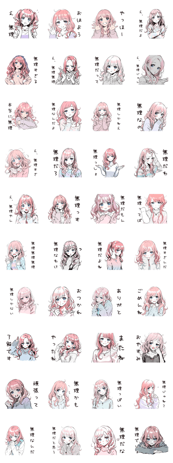 女子の「え、無理」がいっぱい!可愛い女性イラストで日常会話に。断り/面白い/サバサバ/友達/チャット/リアクション