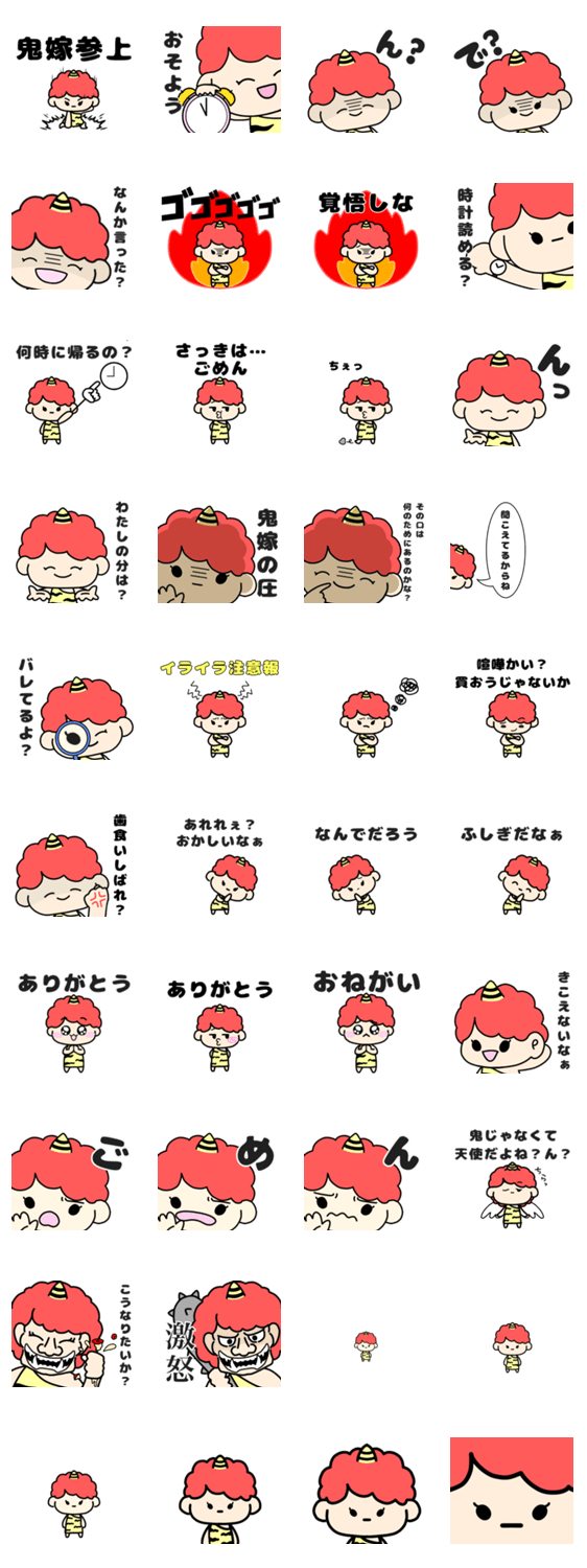 鬼嫁スタンプを作りました 可愛い顔して追い詰めます。 鬼/鬼嫁/怒/可愛い