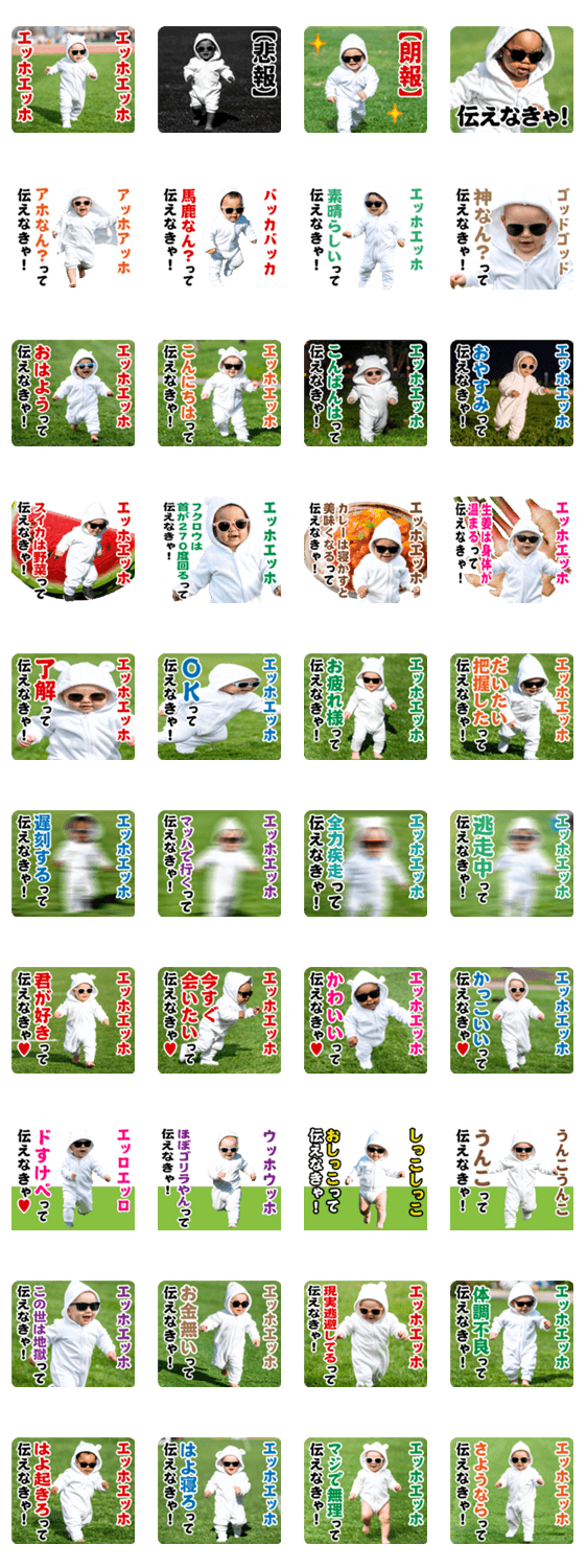 | スタンプ説明 | ネットミーム/赤ちゃんミーム/赤ん坊/走る/マッハ/連絡/急ぐ/仕事/彼女/恋人/恋愛/感謝/日常会話/あいさつ/挨拶/かわいい/返信/毎日/可愛い/シュール/遅刻/面白い/ネタ |