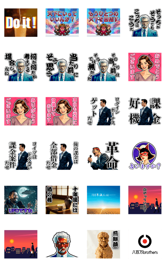 | スタンプ説明 | Youtubeで大絶賛配信中の、クリエーター集団「八百万brothers」のLINEステッカーです。 |