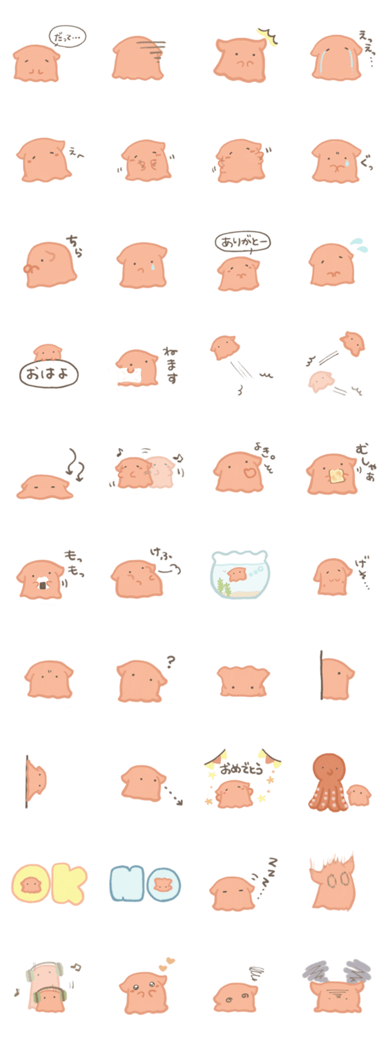 すぐしょげちゃうかわいいめんだこ。 めんだこ/深海生物/いきもの/海/水族館/魚/ペンギン/マニア/謎/ゆるい/喜怒哀楽/挨拶/好き/夏/ピンク/タコ/使いやすい/便利/面白い/