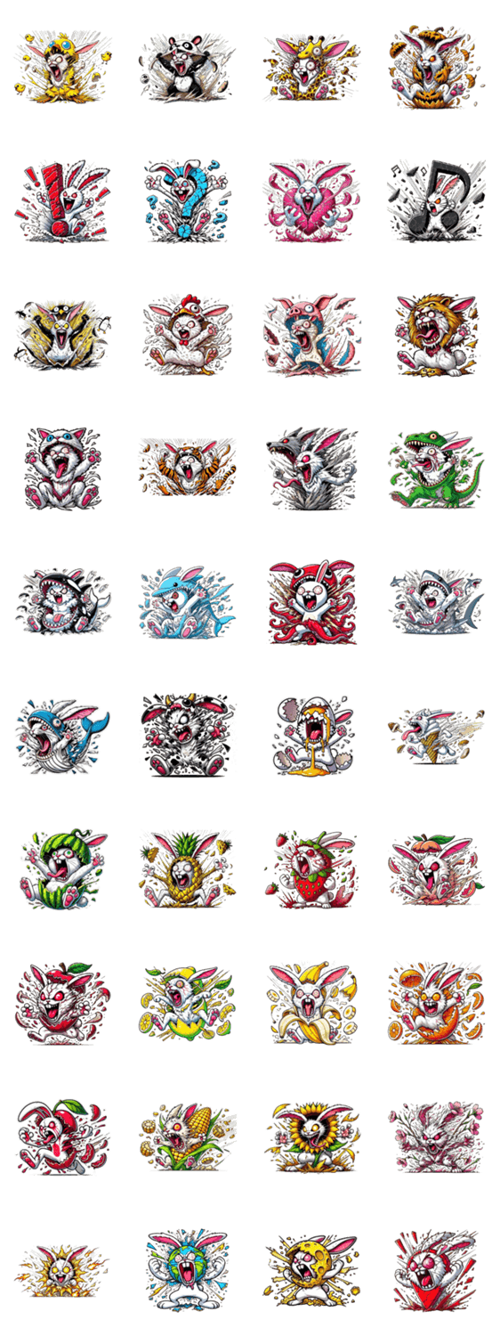 スタンプ説明 「可愛い」を破壊する、うさぎ破壊神の登場!