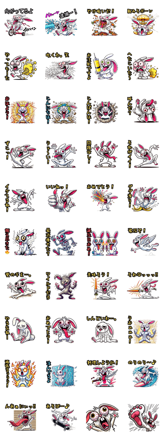 | スタンプ説明 | 癖の強すぎるうさぎが癖になってしまいます❗️コミュニケーションに是非どうぞ‼️ |