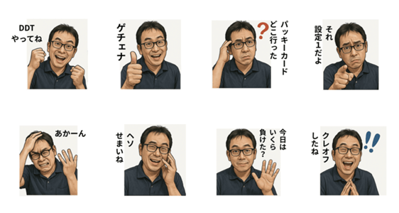 少し懐かしいスロット用語おじさん集。スロット好きにはたまらないスタンプです。
