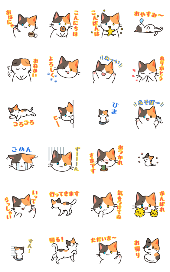 日常ご挨拶(三毛猫編) -LINEスタンプマニア