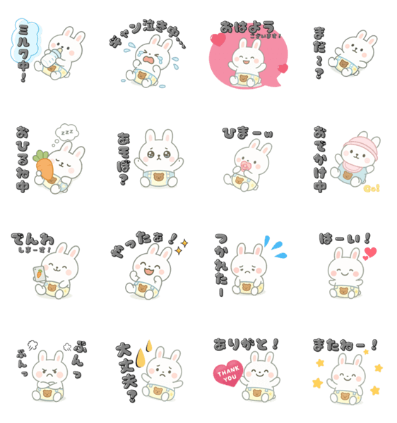 可愛いベビーうさぎのスタンプです。赤ちゃんの状況をスタンプでお知らせできます。