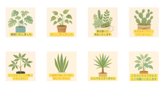 | スタンプ説明 | 仕事でのやりとりにも使える落ち着いた雰囲気のスタンプです。お客様とのやりとりにも! |