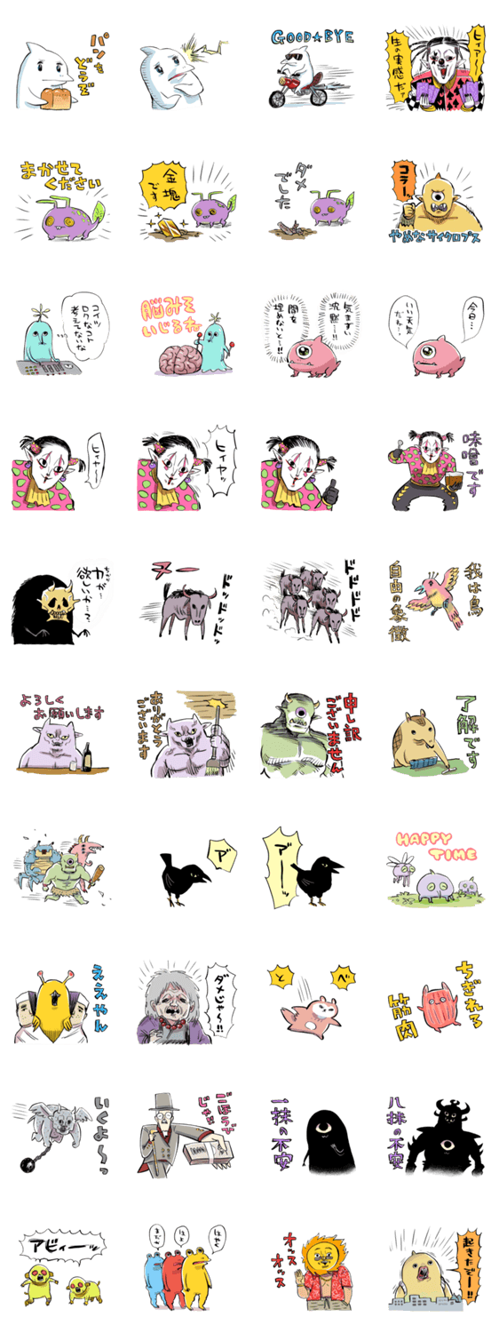 川尻こだまの漫画に登場する生き物たちのスタンプ。