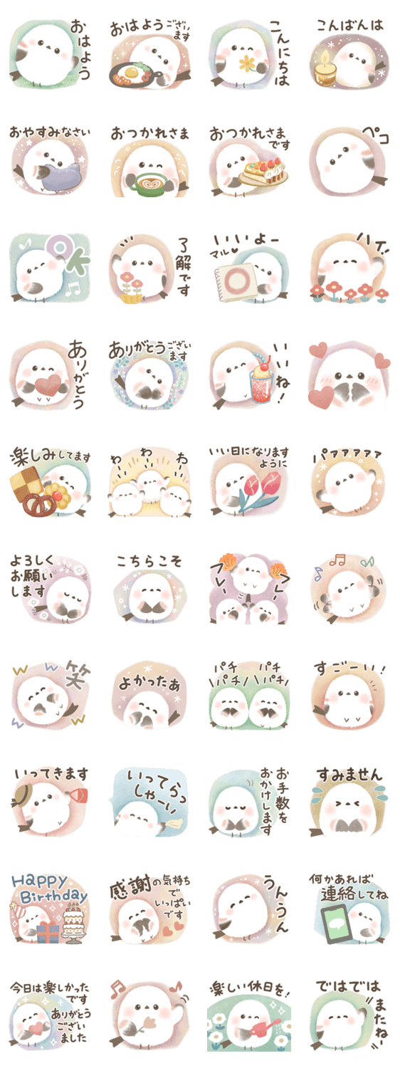 主線なしのほんわりやさしいトーンのシマエナガさん。ずっと使える言葉を選びました。敬語あり。