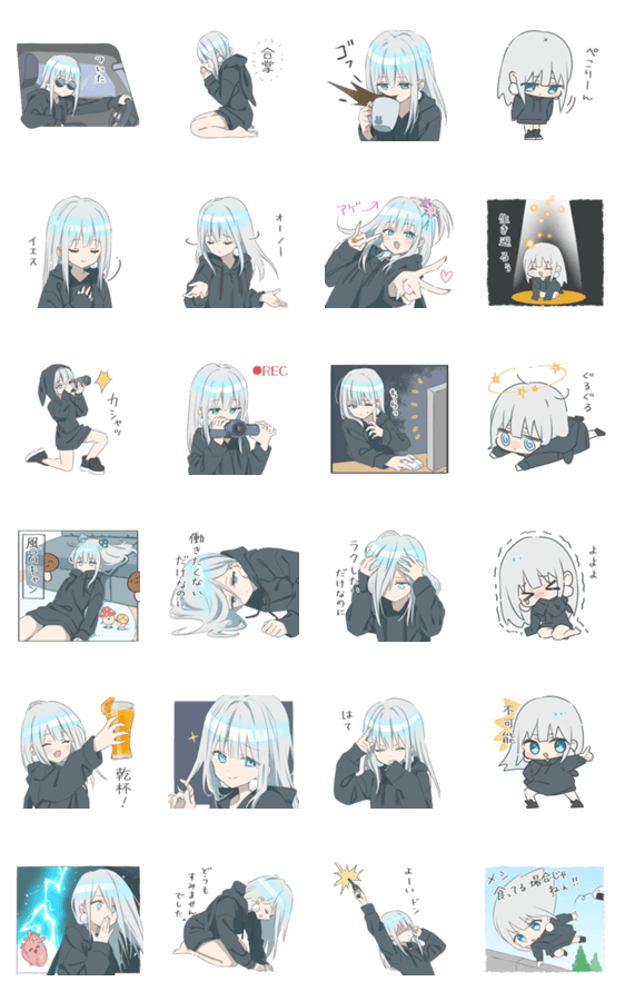 パーカーの女の子(銀髪)15 -LINEスタンプマニア