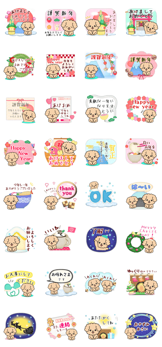 | スタンプ説明 | 【お正月】年末年始の挨拶に使える冬年賀スタンプ。お正月や大晦日に使いやすい/犬/敬語/お正月/新年/年賀/あけましておめでとう/お大事に/年賀状/クリスマス/mamama-chin |