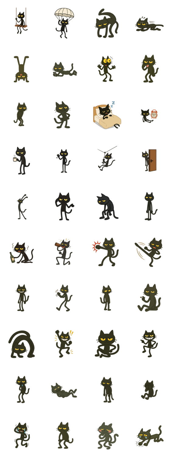 ゆるかわ&やる気ない黒猫スタンプ第2弾!無言で伝わる脱力リアクションが満載。猫好きの日常にぴったり♪