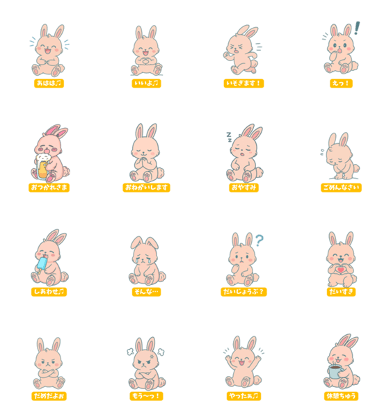 | スタンプ説明 | ふわふわ・もっちりなうさぎと出会ってみて!表情豊かなうさぎが、毎日の気持ちをかわいく伝えます。 |