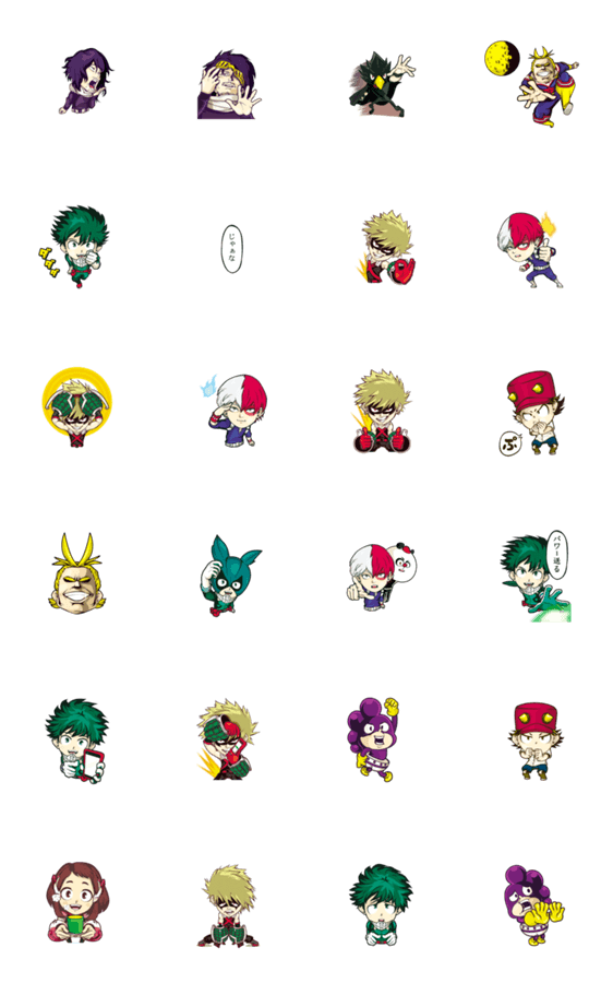 初期「ヒロアカ」の人気キャラクターのスタンプです。※背景が黒の方は、動きが分かりにくい場合がありますので予めご了承ください。 ※LINE Creators Collaboration 僕のヒーローアカデミア参加スタンプです。