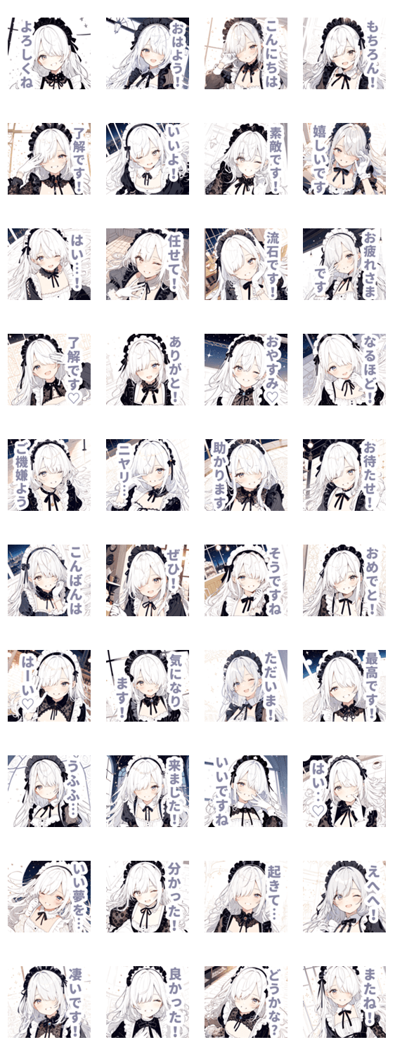 セリフ 付き 日常 スタンプ 白髪 メイド 女子 目隠し