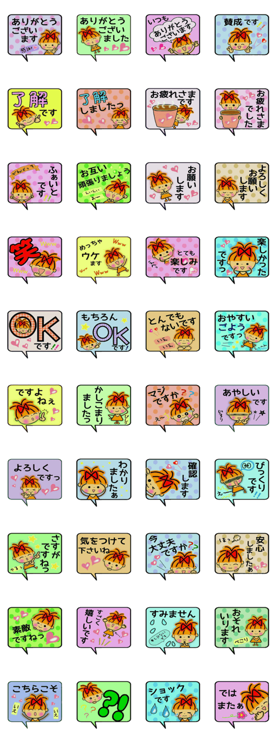 敬語のスタンプです。可愛いあいこちゃんのスタンプでトークを盛り上げて下さ~い。