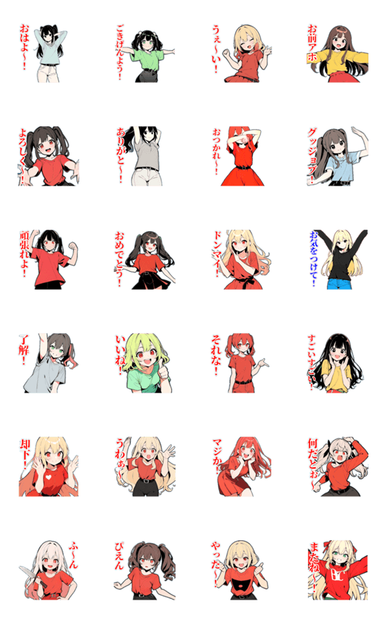 なんか奇妙な動きをしている女の子のスタンプです。一年中、毎日使える。ダンス、キモい踊り、踊る、動く、美少女、かわいい、可愛い、萌え、アニメ風、ダンシング。