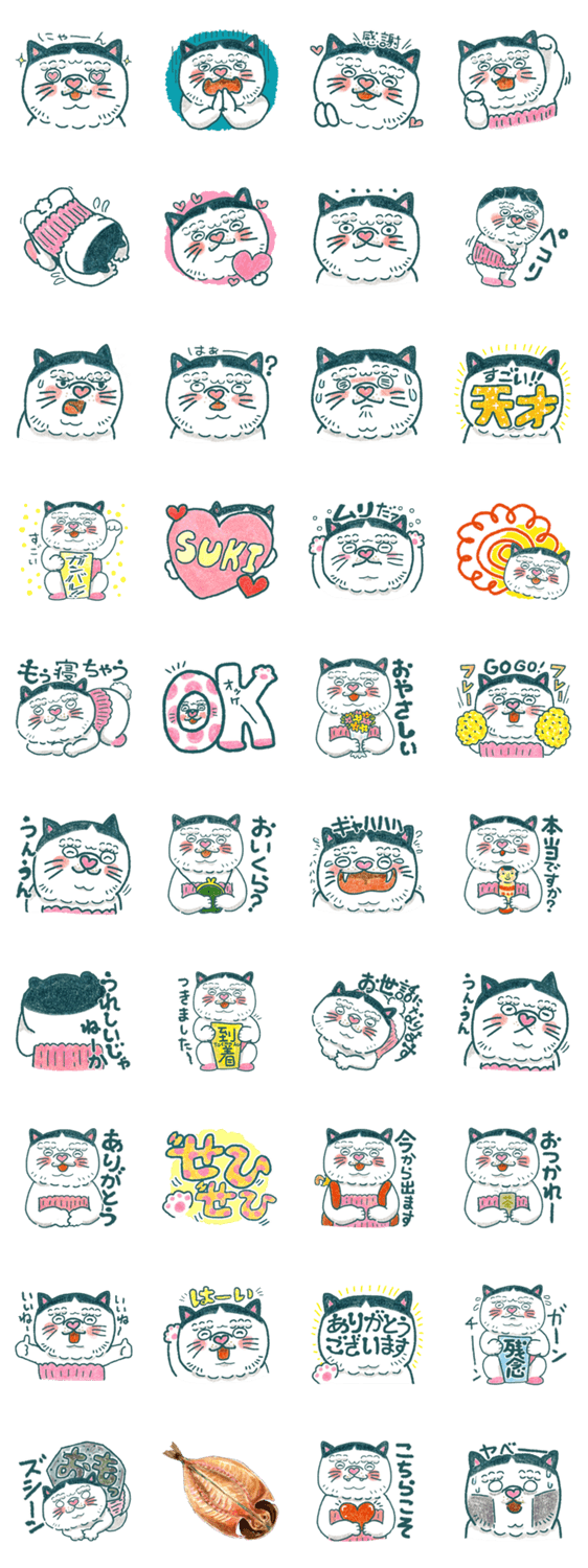 ハチワレねこのはち田さんのスタンプ♪ よく使う言葉を集めたよ〜 猫!ねこ!ネコ!!