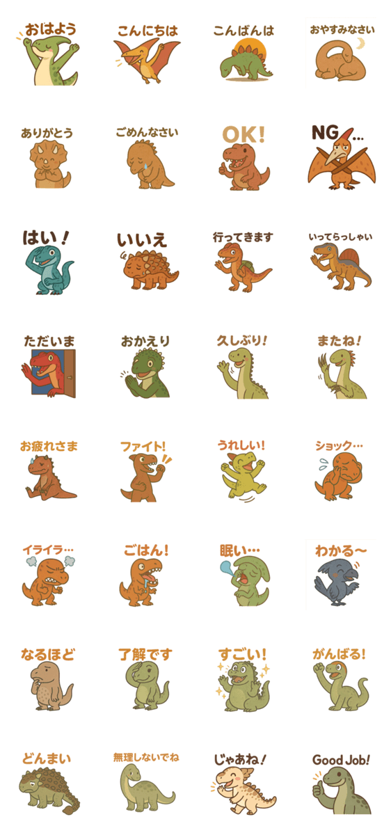 かわいい恐竜たちが、あなたの気持ちを元気に伝えてくれます!日常で使いやすいスタンプがいっぱい!