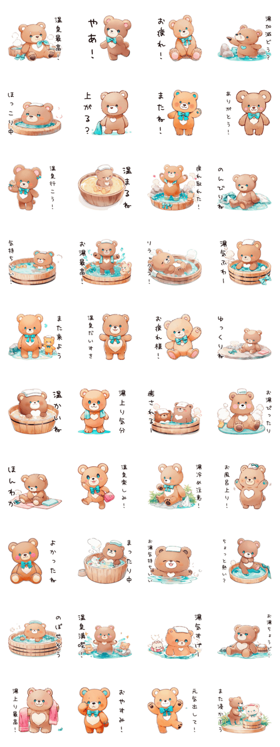 やさしいくまが温泉でリラックス!癒しのスタンプでトークを温めよう。温泉/くま/癒し/リラックス/お風呂/ほっこり