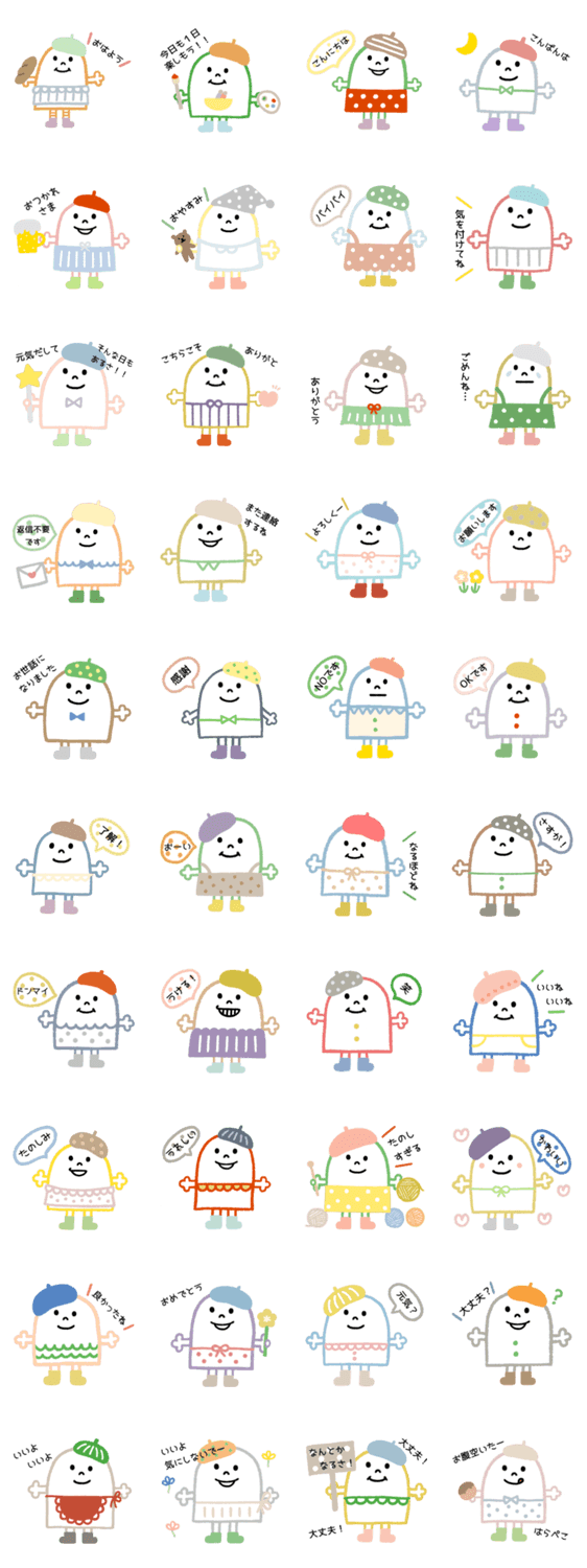 スタンプ説明 カラフルなベレー帽とキャラクターが可愛いです。