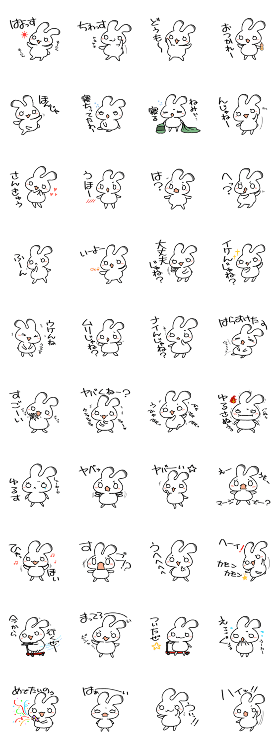 口調がやんちゃ気味のエゾウサギです。仲良しさん向け普段使いのスタンプです。